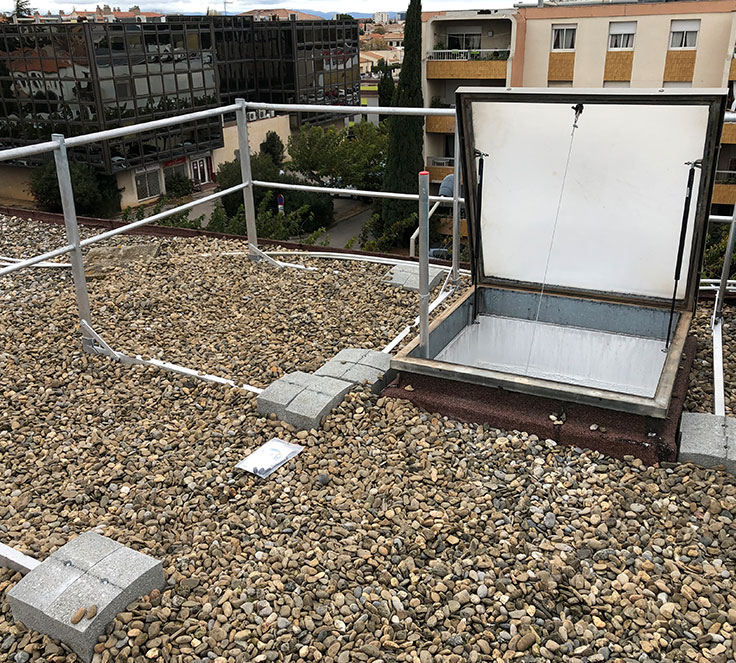 - Fourniture et Pose : Point d’ancrage / Ligne de vie (Câble ou Rail) / Potelet d’ancrage